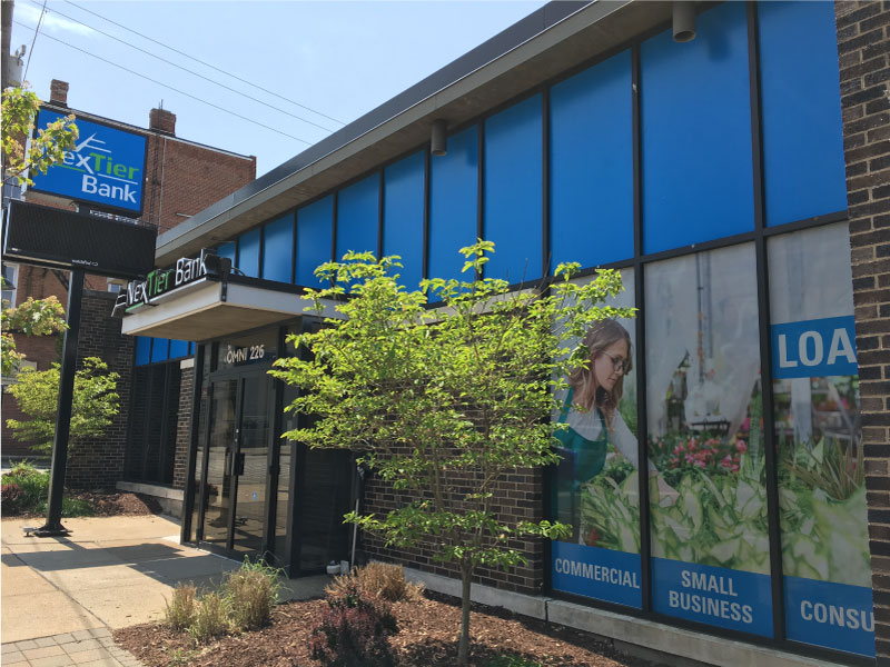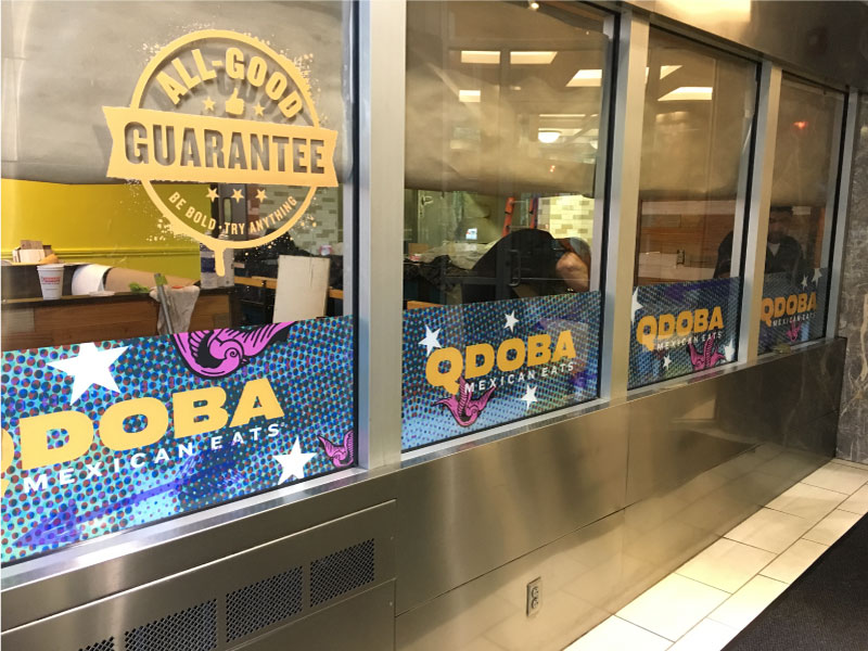 with interior graphics. We have helped fill the signage needs of restaurants, banks, insurance companies, medical professionals, corporate headquarters, start-ups, and other business types. Our team provides design expertise to elevate your brand image and create a lasting impression for any business, big or small. Window graphics help carry your brand image throughout your office space, like our work at HBK and the Oxford Athletic Club. By creating a lasting image on your storefront window, you invite the public in to explore your business, like our work with NexTier Bank, Cool Springs Sports Complex or Qdoba. This is your chance to let the world know who you are and what type of business you do.