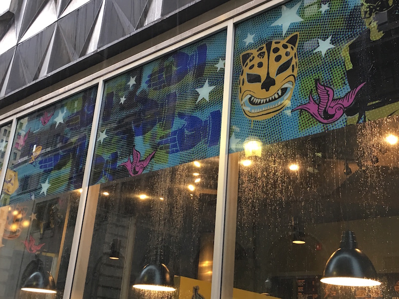 The photos show the storefront window graphics we installed at the Grant Street location in Pittsburgh. Included are shots of the vibrant designs created to showcase Qdoba’s brand and logo.