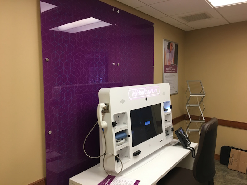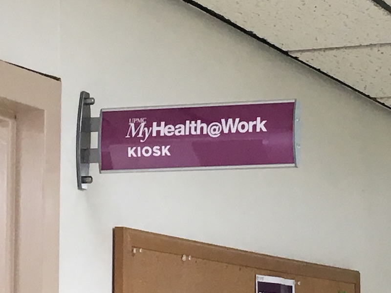 Spark Signs was asked to provide signage solutions for UPMC’s new concept, UPMC MyHealth@Work Kiosks. The kiosks serve the health needs of UPMC employees at specific hospitals throughout western and central Pennsylvania. The project included acrylic backsplashes, projecting signs, posters and frames, and literature racks to help brand the new kiosk rooms.