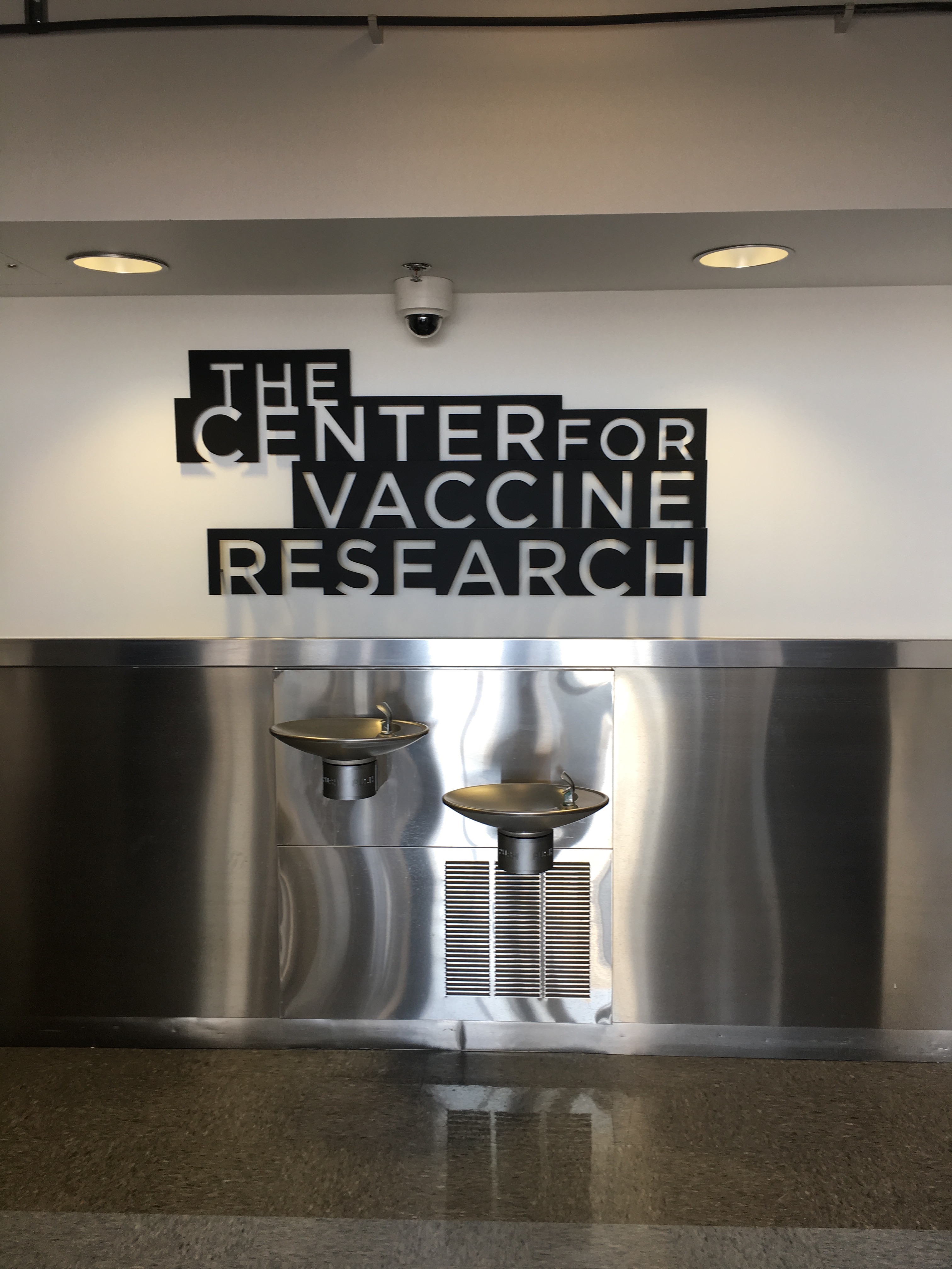 The University of Pittsburgh’s Center for Vaccine Research needed our help to brand the entrances on two of their different floors. We worked closely with them to bring their design to life and installed two custom-made lobby signs.