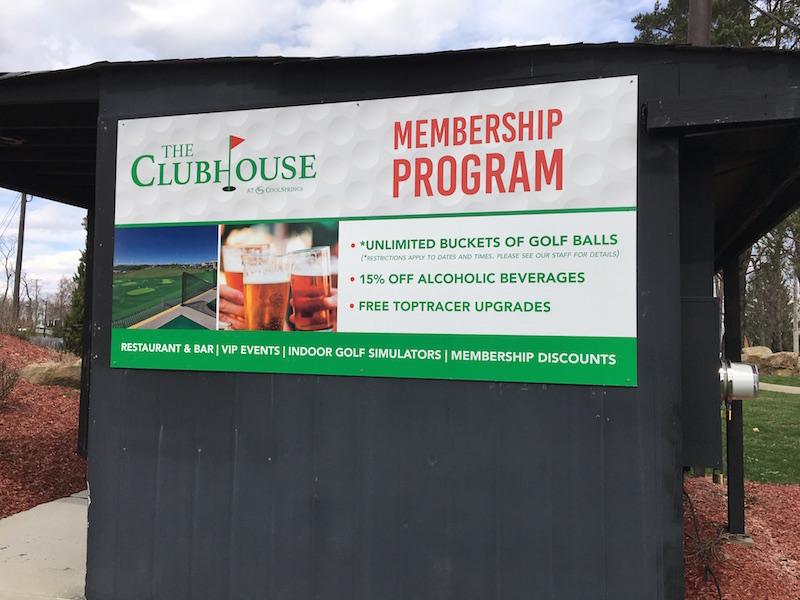 We provided several signs for the new restaurant and installed them several days before the grand opening. The promotional signage was placed on buildings close to The Clubhouse and around the Cool Springs Campus with messaging about the new Golf Academy and membership options. We installed many interior and exterior window graphics on all the doors leading into